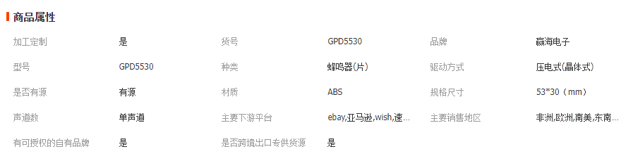 本网页所展示的有关【厂家供应 高分贝报警器 报警蜂鸣器 3V高分贝蜂鸣器_蜂鸣器_东莞市赢海电子有限公司】的信息/图片/参数等由全球零部件网的会员【东莞市赢海电子有限公司】提供,由全球零部件网会员【东莞市赢海电子有限公司】自行对信息/图片/参数等的真实性、准确性和合法性负责,本平台(本网站)仅提供展示服务,请谨慎交易,因交易而产生的法律关系及法律纠纷由您自行协商解决,本平台(本网站)对此不承担任何责任。您在本网页可以浏览【厂家供应 高分贝报警器 报警蜂鸣器 3V高分贝蜂鸣器_蜂鸣器_东莞市赢海电子有限公司】有关的信息/图片/价格等及提供【厂家供应 高分贝报警器 报警蜂鸣器 3V高分贝蜂鸣器_蜂鸣器_东莞市赢海电子有限公司】的商家公司简介、江南(中国)等信息。