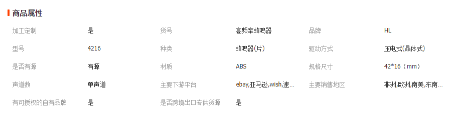 本网页所展示的有关【华力4216蜂鸣器有源连续声蜂鸣器 断续声蜂鸣器高频率蜂鸣器_蜂鸣器_华力电子(惠州)有限公司】的信息/图片/参数等由全球零部件网的会员【华力电子(惠州)有限公司】提供,由全球零部件网会员【华力电子(惠州)有限公司】自行对信息/图片/参数等的真实性、准确性和合法性负责,本平台(本网站)仅提供展示服务,请谨慎交易,因交易而产生的法律关系及法律纠纷由您自行协商解决,本平台(本网站)对此不承担任何责任。您在本网页可以浏览【华力4216蜂鸣器有源连续声蜂鸣器 断续声蜂鸣器高频率蜂鸣器_蜂鸣器_华力电子(惠州)有限公司】有关的信息/图片/价格等及提供【华力4216蜂鸣器有源连续声蜂鸣器 断续声蜂鸣器高频率蜂鸣器_蜂鸣器_华力电子(惠州)有限公司】的商家公司简介、江南(中国)等信息。