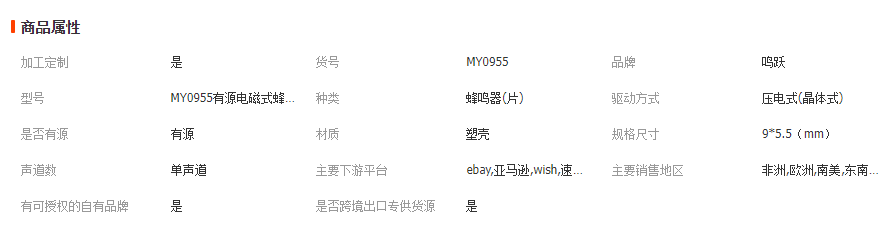 本网页所展示的有关【批发9*5.5mm 3V有源电磁式蜂鸣器 额温枪专用一体蜂鸣器 东莞厂家_蜂鸣器_东莞市鸣跃电子科技有限公司】的信息/图片/参数等由全球零部件网的会员【东莞市鸣跃电子科技有限公司】提供,由全球零部件网会员【东莞市鸣跃电子科技有限公司】自行对信息/图片/参数等的真实性、准确性和合法性负责,本平台(本网站)仅提供展示服务,请谨慎交易,因交易而产生的法律关系及法律纠纷由您自行协商解决,本平台(本网站)对此不承担任何责任。您在本网页可以浏览【批发9*5.5mm 3V有源电磁式蜂鸣器 额温枪专用一体蜂鸣器 东莞厂家_蜂鸣器_东莞市鸣跃电子科技有限公司】有关的信息/图片/价格等及提供【批发9*5.5mm 3V有源电磁式蜂鸣器 额温枪专用一体蜂鸣器 东莞厂家_蜂鸣器_东莞市鸣跃电子科技有限公司】的商家公司简介、江南(中国)等信息。