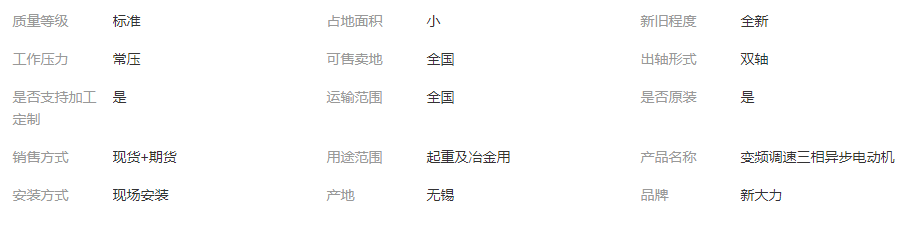 本网页所展示的有关【新大力 三相异步电动机 YZP132M2-6-4.0KW 使用便捷 坚固耐用_驱动电机_无锡新大力电机有限公司】的信息/图片/参数等由全球零部件网的会员【无锡新大力电机有限公司】提供,由全球零部件网会员【无锡新大力电机有限公司】自行对信息/图片/参数等的真实性、准确性和合法性负责,本平台(本网站)仅提供展示服务,请谨慎交易,因交易而产生的法律关系及法律纠纷由您自行协商解决,本平台(本网站)对此不承担任何责任。您在本网页可以浏览【新大力 三相异步电动机 YZP132M2-6-4.0KW 使用便捷 坚固耐用_驱动电机_无锡新大力电机有限公司】有关的信息/图片/价格等及提供【新大力 三相异步电动机 YZP132M2-6-4.0KW 使用便捷 坚固耐用_驱动电机_无锡新大力电机有限公司】的商家公司简介、江南(中国)等信息。