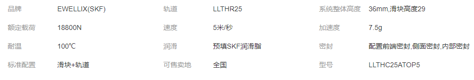 EWELLIX(SKF)直线导轨,生产基地主要在德国和中国台湾,分为LLT系列滚珠导轨,LLS系列微型导轨,LLR系列滚柱导轨;精度等级 P5,P3,P1;预压等级 T0,T1,T2,;LLT直线导轨运行行程可以任意设计,常规产品满足万能互换配组,用于工业自动化,医疗,机床,机器人,轨道交通,物流搬运,注塑成型,木工机械,印刷,包装等,特有的X型受力配置,优点是带有SKF固有的调心性能血统,有效的承受多轴系统的平行度和高度偏差,满足任意方向上的均匀受力,提高了导轨的工作寿命,寿命是以100公里为计算基础,区别其他品牌50公里的计算基础。