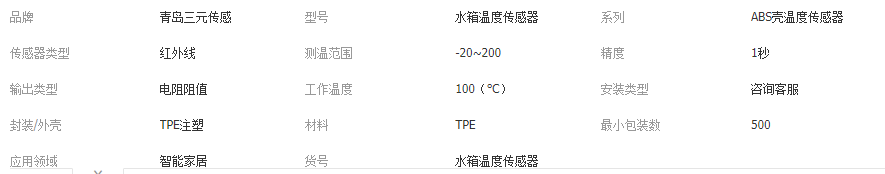 本网页所展示的有关【水箱温度传感器 带挡片开水器温度传感器 子弹头温度传感器_传感器_青岛三元传感技术有限公司】的信息/图片/参数等由全球零部件网的会员【青岛三元传感技术有限公司】提供,由全球零部件网会员【青岛三元传感技术有限公司】自行对信息/图片/参数等的真实性、准确性和合法性负责,本平台(本网站)仅提供展示服务,请谨慎交易,因交易而产生的法律关系及法律纠纷由您自行协商解决,本平台(本网站)对此不承担任何责任。您在本网页可以浏览【水箱温度传感器 带挡片开水器温度传感器 子弹头温度传感器_传感器_青岛三元传感技术有限公司】有关的信息/图片/价格等及提供【水箱温度传感器 带挡片开水器温度传感器 子弹头温度传感器_传感器_青岛三元传感技术有限公司】的商家公司简介、江南(中国)等信息。