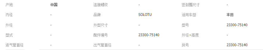 本网页所展示的有关【23300-75140 汽车滤清器零件燃油滤清器 适用于丰田_汽车用品与附件_广州丰之源进出口有限公司】的信息/图片/参数等由全球零部件网的会员【广州丰之源进出口有限公司】提供,由全球零部件网会员【广州丰之源进出口有限公司】自行对信息/图片/参数等的真实性、准确性和合法性负责,本平台(本网站)仅提供展示服务,请谨慎交易,因交易而产生的法律关系及法律纠纷由您自行协商解决,本平台(本网站)对此不承担任何责任。您在本网页可以浏览【23300-75140 汽车滤清器零件燃油滤清器 适用于丰田_汽车用品与附件_广州丰之源进出口有限公司】有关的信息/图片/价格等及提供【23300-75140 汽车滤清器零件燃油滤清器 适用于丰田_汽车用品与附件_广州丰之源进出口有限公司】的商家公司简介、江南(中国)等信息。
