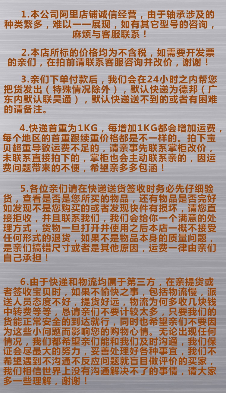 本网页所展示的有关【原装日本NTN轴承 6417ZZ LLU CM/5K高速电机深沟球轴承_轴承_广州海轴轴承机电有限公司】的信息/图片/参数等由全球零部件网的会员【广州海轴轴承机电有限公司】提供,由全球零部件网会员【广州海轴轴承机电有限公司】自行对信息/图片/参数等的真实性、准确性和合法性负责,本平台(本网站)仅提供展示服务,请谨慎交易,因交易而产生的法律关系及法律纠纷由您自行协商解决,本平台(本网站)对此不承担任何责任。您在本网页可以浏览【原装日本NTN轴承 6417ZZ LLU CM/5K高速电机深沟球轴承_轴承_广州海轴轴承机电有限公司】有关的信息/图片/价格等及提供【原装日本NTN轴承 6417ZZ LLU CM/5K高速电机深沟球轴承_轴承_广州海轴轴承机电有限公司】的商家公司简介、江南(中国)等信息。