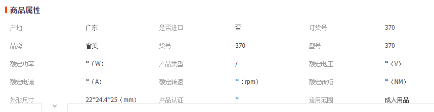 本网页所展示的有关【供应370减速电机 涡轮直流电机马达 调速机械电器微型电机可制订_电机_东莞市睿美智能传动科技有限公司】的信息/图片/参数等由全球零部件网的会员【东莞市睿美智能传动科技有限公司】提供,由全球零部件网会员【东莞市睿美智能传动科技有限公司】自行对信息/图片/参数等的真实性、准确性和合法性负责,本平台(本网站)仅提供展示服务,请谨慎交易,因交易而产生的法律关系及法律纠纷由您自行协商解决,本平台(本网站)对此不承担任何责任。您在本网页可以浏览【供应370减速电机 涡轮直流电机马达 调速机械电器微型电机可制订_电机_东莞市睿美智能传动科技有限公司】有关的信息/图片/价格等及提供【供应370减速电机 涡轮直流电机马达 调速机械电器微型电机可制订_电机_东莞市睿美智能传动科技有限公司】的商家公司简介、江南(中国)等信息。