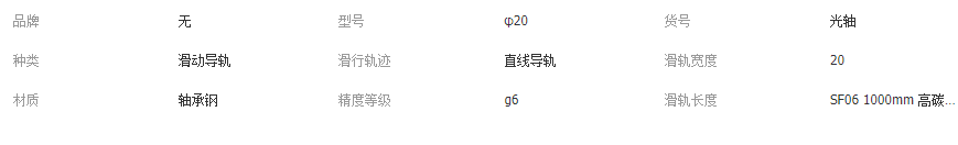 本网页所展示的有关【直线光轴SF06 SF8 SF10 SF12 SF16 SF20 SF25 轴承钢厂家批发_直线运动轴承_丽水市佰联精密机械有限公司】的信息/图片/参数等由全球零部件网的会员【丽水市佰联精密机械有限公司】提供,由全球零部件网会员【丽水市佰联精密机械有限公司】自行对信息/图片/参数等的真实性、准确性和合法性负责,本平台(本网站)仅提供展示服务,请谨慎交易,因交易而产生的法律关系及法律纠纷由您自行协商解决,本平台(本网站)对此不承担任何责任。您在本网页可以浏览【直线光轴SF06 SF8 SF10 SF12 SF16 SF20 SF25 轴承钢厂家批发_直线运动轴承_丽水市佰联精密机械有限公司】有关的信息/图片/价格等及提供【直线光轴SF06 SF8 SF10 SF12 SF16 SF20 SF25 轴承钢厂家批发_直线运动轴承_丽水市佰联精密机械有限公司】的商家公司简介、江南(中国)等信息。