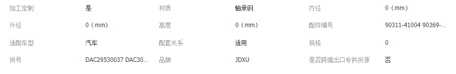 本网页所展示的有关【现货供应 DAC27550032 汽车轮毂轴承 DAC30550032 DAC3055W_轴承_山东金东旭轴承有限公司】的信息/图片/参数等由全球零部件网的会员【山东金东旭轴承有限公司】提供,由全球零部件网会员【山东金东旭轴承有限公司】自行对信息/图片/参数等的真实性、准确性和合法性负责,本平台(本网站)仅提供展示服务,请谨慎交易,因交易而产生的法律关系及法律纠纷由您自行协商解决,本平台(本网站)对此不承担任何责任。您在本网页可以浏览【现货供应 DAC27550032 汽车轮毂轴承 DAC30550032 DAC3055W_轴承_山东金东旭轴承有限公司】有关的信息/图片/价格等及提供【现货供应 DAC27550032 汽车轮毂轴承 DAC30550032 DAC3055W_轴承_山东金东旭轴承有限公司】的商家公司简介、江南(中国)等信息。