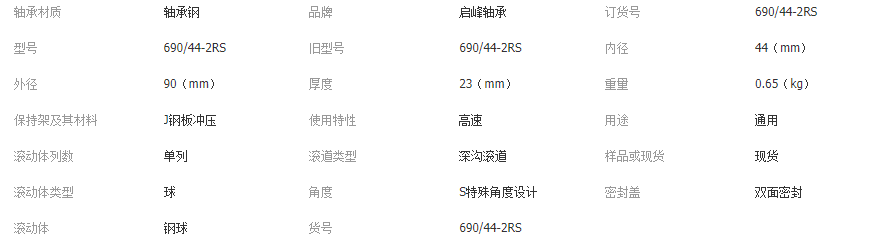 本网页所展示的有关【旋耕犁 樱田打浆机轴承 非标轴承 690/44-2RS 尺寸44*90*23_轴承_聊城市启峰轴承有限公司】的信息/图片/参数等由全球零部件网的会员【聊城市启峰轴承有限公司】提供,由全球零部件网会员【聊城市启峰轴承有限公司】自行对信息/图片/参数等的真实性、准确性和合法性负责,本平台(本网站)仅提供展示服务,请谨慎交易,因交易而产生的法律关系及法律纠纷由您自行协商解决,本平台(本网站)对此不承担任何责任。您在本网页可以浏览【旋耕犁 樱田打浆机轴承 非标轴承 690/44-2RS 尺寸44*90*23_轴承_聊城市启峰轴承有限公司】有关的信息/图片/价格等及提供【旋耕犁 樱田打浆机轴承 非标轴承 690/44-2RS 尺寸44*90*23_轴承_聊城市启峰轴承有限公司】的商家公司简介、江南(中国)等信息。