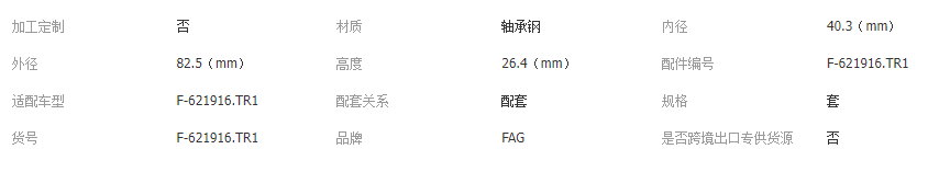 本网页所展示的有关【FAG F-621916.TR1汽车差速器轴承 变速箱轴承F-621917.TR1_轴承_上海米菲勒传动科技有限公司】的信息/图片/参数等由全球零部件网的会员【上海米菲勒传动科技有限公司】提供,由全球零部件网会员【上海米菲勒传动科技有限公司】自行对信息/图片/参数等的真实性、准确性和合法性负责,本平台(本网站)仅提供展示服务,请谨慎交易,因交易而产生的法律关系及法律纠纷由您自行协商解决,本平台(本网站)对此不承担任何责任。您在本网页可以浏览【FAG F-621916.TR1汽车差速器轴承 变速箱轴承F-621917.TR1_轴承_上海米菲勒传动科技有限公司】有关的信息/图片/价格等及提供【FAG F-621916.TR1汽车差速器轴承 变速箱轴承F-621917.TR1_轴承_上海米菲勒传动科技有限公司】的商家公司简介、江南(中国)等信息。