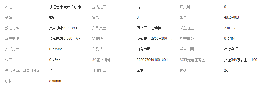 本网页所展示的有关【我司长期供应4815-003罩极电机,广泛应用于移动空调等家用电器_电机_余姚市梨洲机电制造有限公司】的信息/图片/参数等由全球零部件网的会员【余姚市梨洲机电制造有限公司】提供,由全球零部件网会员【余姚市梨洲机电制造有限公司】自行对信息/图片/参数等的真实性、准确性和合法性负责,本平台(本网站)仅提供展示服务,请谨慎交易,因交易而产生的法律关系及法律纠纷由您自行协商解决,本平台(本网站)对此不承担任何责任。您在本网页可以浏览【我司长期供应4815-003罩极电机,广泛应用于移动空调等家用电器_电机_余姚市梨洲机电制造有限公司】有关的信息/图片/价格等及提供【我司长期供应4815-003罩极电机,广泛应用于移动空调等家用电器_电机_余姚市梨洲机电制造有限公司】的商家公司简介、江南(中国)等信息。