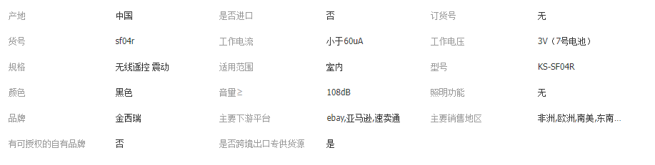 本网页所展示的有关【遥控震动报警器 无线震动报警器灵敏度可调 大音量报警器厂家批发_报警器_深圳市金西瑞电子有限公司】的信息/图片/参数等由全球零部件网的会员【深圳市金西瑞电子有限公司】提供,由全球零部件网会员【深圳市金西瑞电子有限公司】自行对信息/图片/参数等的真实性、准确性和合法性负责,本平台(本网站)仅提供展示服务,请谨慎交易,因交易而产生的法律关系及法律纠纷由您自行协商解决,本平台(本网站)对此不承担任何责任。您在本网页可以浏览【遥控震动报警器 无线震动报警器灵敏度可调 大音量报警器厂家批发_报警器_深圳市金西瑞电子有限公司】有关的信息/图片/价格等及提供【遥控震动报警器 无线震动报警器灵敏度可调 大音量报警器厂家批发_报警器_深圳市金西瑞电子有限公司】的商家公司简介、江南(中国)等信息。
