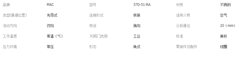美国MAC成立于1948年,拥有70多项专利技术,专业设计制造高性能的空压电磁阀。MAC电磁阀以速度快、重复度高、环境耐受性强而著称.