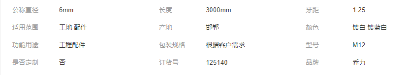 本网页所展示的有关【厂家4.8级镀锌牙条吊顶通丝杆1-3米全牙螺纹杆丝杠m4-m48_五金配件_邯郸市乔力紧固件有限公司】的信息/图片/参数等由全球零部件网的会员【邯郸市乔力紧固件有限公司】提供,由全球零部件网会员【邯郸市乔力紧固件有限公司】自行对信息/图片/参数等的真实性、准确性和合法性负责,本平台(本网站)仅提供展示服务,请谨慎交易,因交易而产生的法律关系及法律纠纷由您自行协商解决,本平台(本网站)对此不承担任何责任。您在本网页可以浏览【厂家4.8级镀锌牙条吊顶通丝杆1-3米全牙螺纹杆丝杠m4-m48_五金配件_邯郸市乔力紧固件有限公司】有关的信息/图片/价格等及提供【厂家4.8级镀锌牙条吊顶通丝杆1-3米全牙螺纹杆丝杠m4-m48_五金配件_邯郸市乔力紧固件有限公司】的商家公司简介、江南(中国)等信息。