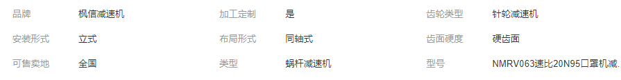 本网页所展示的有关【松下伺服电机汇川伺服电机信捷伺服电机1.5KW配NMRV063速比20N95口罩机减速机_电机_上海枫信传动机械有限公司】的信息/图片/参数等由全球零部件网的会员【上海枫信传动机械有限公司】提供,由全球零部件网会员【上海枫信传动机械有限公司】自行对信息/图片/参数等的真实性、准确性和合法性负责,本平台(本网站)仅提供展示服务,请谨慎交易,因交易而产生的法律关系及法律纠纷由您自行协商解决,本平台(本网站)对此不承担任何责任。您在本网页可以浏览【松下伺服电机汇川伺服电机信捷伺服电机1.5KW配NMRV063速比20N95口罩机减速机_电机_上海枫信传动机械有限公司】有关的信息/图片/价格等及提供【松下伺服电机汇川伺服电机信捷伺服电机1.5KW配NMRV063速比20N95口罩机减速机_电机_上海枫信传动机械有限公司】的商家公司简介、江南(中国)等信息。