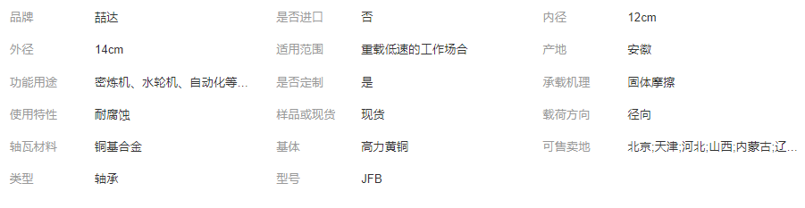 本网页所展示的有关【喆达定制带挡边 铜衬套 JFB翻边自润滑轴承 承载力好_轴承_合肥喆达无油滑动轴承厂】的信息/图片/参数等由全球零部件网的会员【合肥喆达无油滑动轴承厂】提供,由全球零部件网会员【合肥喆达无油滑动轴承厂】自行对信息/图片/参数等的真实性、准确性和合法性负责,本平台(本网站)仅提供展示服务,请谨慎交易,因交易而产生的法律关系及法律纠纷由您自行协商解决,本平台(本网站)对此不承担任何责任。您在本网页可以浏览【喆达定制带挡边 铜衬套 JFB翻边自润滑轴承 承载力好_轴承_合肥喆达无油滑动轴承厂】有关的信息/图片/价格等及提供【喆达定制带挡边 铜衬套 JFB翻边自润滑轴承 承载力好_轴承_合肥喆达无油滑动轴承厂】的商家公司简介、江南(中国)等信息。
