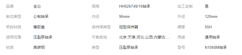 本网页所展示的有关【23240CA/W33轴承 N1068M轴承 HH926749/10轴承 压裂泵轴承_轴承_临清市金仑轴承有限公司】的信息/图片/参数等由全球零部件网的会员【临清市金仑轴承有限公司】提供,由全球零部件网会员【临清市金仑轴承有限公司】自行对信息/图片/参数等的真实性、准确性和合法性负责,本平台(本网站)仅提供展示服务,请谨慎交易,因交易而产生的法律关系及法律纠纷由您自行协商解决,本平台(本网站)对此不承担任何责任。您在本网页可以浏览【23240CA/W33轴承 N1068M轴承 HH926749/10轴承 压裂泵轴承_轴承_临清市金仑轴承有限公司】有关的信息/图片/价格等及提供【23240CA/W33轴承 N1068M轴承 HH926749/10轴承 压裂泵轴承_轴承_临清市金仑轴承有限公司】的商家公司简介、江南(中国)等信息。