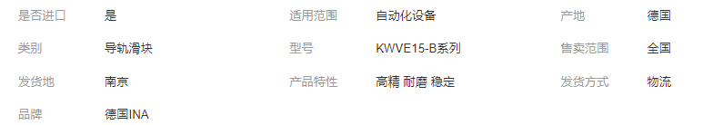 本网页所展示的有关【导轨滑块 德国 INA滑块 高精耐磨 运行稳定 KWVE15-B系列_导轨_南京盛凯特轴承有限公司】的信息/图片/参数等由全球零部件网的会员【南京盛凯特轴承有限公司】提供,由全球零部件网会员【南京盛凯特轴承有限公司】自行对信息/图片/参数等的真实性、准确性和合法性负责,本平台(本网站)仅提供展示服务,请谨慎交易,因交易而产生的法律关系及法律纠纷由您自行协商解决,本平台(本网站)对此不承担任何责任。您在本网页可以浏览【导轨滑块 德国 INA滑块 高精耐磨 运行稳定 KWVE15-B系列_导轨_南京盛凯特轴承有限公司】有关的信息/图片/价格等及提供【导轨滑块 德国 INA滑块 高精耐磨 运行稳定 KWVE15-B系列_导轨_南京盛凯特轴承有限公司】的商家公司简介、江南(中国)等信息。