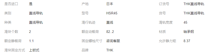 本网页所展示的有关【日本进口 直线导轨 THK 导轨滑块 线型滑轨 HSR45A/B HSR45LA/LB 现货_导轨_南京盛凯特轴承有限公司】的信息/图片/参数等由全球零部件网的会员【南京盛凯特轴承有限公司】提供,由全球零部件网会员【南京盛凯特轴承有限公司】自行对信息/图片/参数等的真实性、准确性和合法性负责,本平台(本网站)仅提供展示服务,请谨慎交易,因交易而产生的法律关系及法律纠纷由您自行协商解决,本平台(本网站)对此不承担任何责任。您在本网页可以浏览【日本进口 直线导轨 THK 导轨滑块 线型滑轨 HSR45A/B HSR45LA/LB 现货_导轨_南京盛凯特轴承有限公司】有关的信息/图片/价格等及提供【日本进口 直线导轨 THK 导轨滑块 线型滑轨 HSR45A/B HSR45LA/LB 现货_导轨_南京盛凯特轴承有限公司】的商家公司简介、江南(中国)等信息。