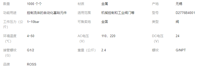 本网页所展示的有关【批发美国原装ROSS阀D2776B4001W/Y/Z两位四通阀 G1/2 24VDC_电磁阀_阿斯克机械(无锡)有限公司】的信息/图片/参数等由全球零部件网的会员【阿斯克机械(无锡)有限公司】提供,由全球零部件网会员【阿斯克机械(无锡)有限公司】自行对信息/图片/参数等的真实性、准确性和合法性负责,本平台(本网站)仅提供展示服务,请谨慎交易,因交易而产生的法律关系及法律纠纷由您自行协商解决,本平台(本网站)对此不承担任何责任。您在本网页可以浏览【批发美国原装ROSS阀D2776B4001W/Y/Z两位四通阀 G1/2 24VDC_电磁阀_阿斯克机械(无锡)有限公司】有关的信息/图片/价格等及提供【批发美国原装ROSS阀D2776B4001W/Y/Z两位四通阀 G1/2 24VDC_电磁阀_阿斯克机械(无锡)有限公司】的商家公司简介、江南(中国)等信息。