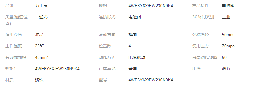本网页所展示的有关【力士乐钢厂液压机械用电磁阀4WE6Y6X/EW230N9K4_电磁阀_武汉百士自动化设备有限公司】的信息/图片/参数等由全球零部件网的会员【武汉百士自动化设备有限公司】提供,由全球零部件网会员【武汉百士自动化设备有限公司】自行对信息/图片/参数等的真实性、准确性和合法性负责,本平台(本网站)仅提供展示服务,请谨慎交易,因交易而产生的法律关系及法律纠纷由您自行协商解决,本平台(本网站)对此不承担任何责任。您在本网页可以浏览【力士乐钢厂液压机械用电磁阀4WE6Y6X/EW230N9K4_电磁阀_武汉百士自动化设备有限公司】有关的信息/图片/价格等及提供【力士乐钢厂液压机械用电磁阀4WE6Y6X/EW230N9K4_电磁阀_武汉百士自动化设备有限公司】的商家公司简介、江南(中国)等信息。