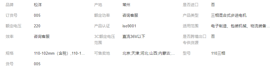 本网页所展示的有关【松洋110三相步进电机套装20NM50Nm大力矩开环马达220V驱动配套_电机_常州市松洋鼎升电机有限公司】的信息/图片/参数等由全球零部件网的会员【常州市松洋鼎升电机有限公司】提供,由全球零部件网会员【常州市松洋鼎升电机有限公司】自行对信息/图片/参数等的真实性、准确性和合法性负责,本平台(本网站)仅提供展示服务,请谨慎交易,因交易而产生的法律关系及法律纠纷由您自行协商解决,本平台(本网站)对此不承担任何责任。您在本网页可以浏览【松洋110三相步进电机套装20NM50Nm大力矩开环马达220V驱动配套_电机_常州市松洋鼎升电机有限公司】有关的信息/图片/价格等及提供【松洋110三相步进电机套装20NM50Nm大力矩开环马达220V驱动配套_电机_常州市松洋鼎升电机有限公司】的商家公司简介、江南(中国)等信息。