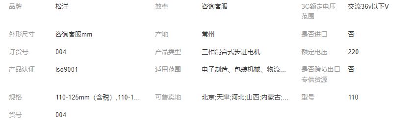 本网页所展示的有关【松洋110仿伺服混合式步进电机低压大力矩开环马达220V驱动厂家售_电机_常州市松洋鼎升电机有限公司】的信息/图片/参数等由全球零部件网的会员【常州市松洋鼎升电机有限公司】提供,由全球零部件网会员【常州市松洋鼎升电机有限公司】自行对信息/图片/参数等的真实性、准确性和合法性负责,本平台(本网站)仅提供展示服务,请谨慎交易,因交易而产生的法律关系及法律纠纷由您自行协商解决,本平台(本网站)对此不承担任何责任。您在本网页可以浏览【松洋110仿伺服混合式步进电机低压大力矩开环马达220V驱动厂家售_电机_常州市松洋鼎升电机有限公司】有关的信息/图片/价格等及提供【松洋110仿伺服混合式步进电机低压大力矩开环马达220V驱动厂家售_电机_常州市松洋鼎升电机有限公司】的商家公司简介、江南(中国)等信息。