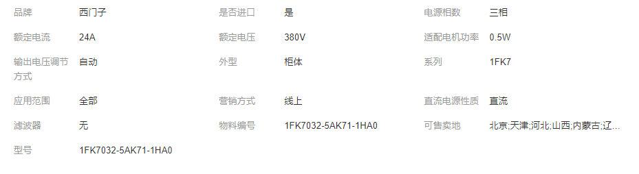 本网页所展示的有关【同步伺服电机 1FK7 紧凑型 1FK7032-5AK71-1HA0 0.50kW_电机_湖北驰财智能科技有限公司】的信息/图片/参数等由全球零部件网的会员【湖北驰财智能科技有限公司】提供,由全球零部件网会员【湖北驰财智能科技有限公司】自行对信息/图片/参数等的真实性、准确性和合法性负责,本平台(本网站)仅提供展示服务,请谨慎交易,因交易而产生的法律关系及法律纠纷由您自行协商解决,本平台(本网站)对此不承担任何责任。您在本网页可以浏览【同步伺服电机 1FK7 紧凑型 1FK7032-5AK71-1HA0 0.50kW_电机_湖北驰财智能科技有限公司】有关的信息/图片/价格等及提供【同步伺服电机 1FK7 紧凑型 1FK7032-5AK71-1HA0 0.50kW_电机_湖北驰财智能科技有限公司】的商家公司简介、江南(中国)等信息。