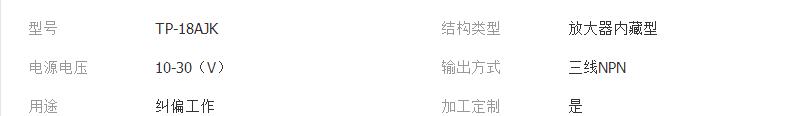 本网页所展示的有关【专业生产红外线光电开关槽形红外线光电传感器TP-A18JK厂家直销_其他传感器_乐清市嘉锐自动化仪表厂】的信息/图片/参数等由全球零部件网的会员【乐清市嘉锐自动化仪表厂】提供,由全球零部件网会员【乐清市嘉锐自动化仪表厂】自行对信息/图片/参数等的真实性、准确性和合法性负责,本平台(本网站)仅提供展示服务,请谨慎交易,因交易而产生的法律关系及法律纠纷由您自行协商解决,本平台(本网站)对此不承担任何责任。您在本网页可以浏览【专业生产红外线光电开关槽形红外线光电传感器TP-A18JK厂家直销_其他传感器_乐清市嘉锐自动化仪表厂】有关的信息/图片/价格等及提供【专业生产红外线光电开关槽形红外线光电传感器TP-A18JK厂家直销_其他传感器_乐清市嘉锐自动化仪表厂】的商家公司简介、江南(中国)等信息。