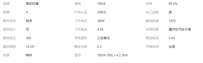 本网页所展示的有关【新二级能效NANYANG防爆电机YBX4-100L1-4 2.2kW_电机_南阳华达防爆机电设备有限公司】的信息/图片/参数等由全球零部件网的会员【南阳华达防爆机电设备有限公司】提供,由全球零部件网会员【南阳华达防爆机电设备有限公司】自行对信息/图片/参数等的真实性、准确性和合法性负责,本平台(本网站)仅提供展示服务,请谨慎交易,因交易而产生的法律关系及法律纠纷由您自行协商解决,本平台(本网站)对此不承担任何责任。您在本网页可以浏览【新二级能效NANYANG防爆电机YBX4-100L1-4 2.2kW_电机_南阳华达防爆机电设备有限公司】有关的信息/图片/价格等及提供【新二级能效NANYANG防爆电机YBX4-100L1-4 2.2kW_电机_南阳华达防爆机电设备有限公司】的商家公司简介、江南(中国)等信息。
