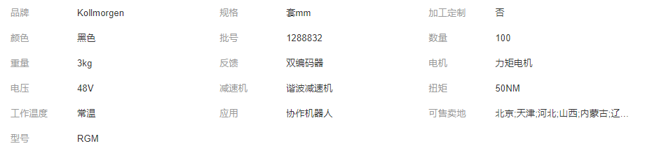 本网页所展示的有关【Kollmorgen科尔摩根 RGM系列双编码器关节模组 协作机器人_编码器_苏州高控科技有限公司】的信息/图片/参数等由全球零部件网的会员【苏州高控科技有限公司】提供,由全球零部件网会员【苏州高控科技有限公司】自行对信息/图片/参数等的真实性、准确性和合法性负责,本平台(本网站)仅提供展示服务,请谨慎交易,因交易而产生的法律关系及法律纠纷由您自行协商解决,本平台(本网站)对此不承担任何责任。您在本网页可以浏览【Kollmorgen科尔摩根 RGM系列双编码器关节模组 协作机器人_编码器_苏州高控科技有限公司】有关的信息/图片/价格等及提供【Kollmorgen科尔摩根 RGM系列双编码器关节模组 协作机器人_编码器_苏州高控科技有限公司】的商家公司简介、江南(中国)等信息。