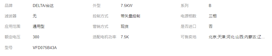 本网页所展示的有关【VFD075B43A台达B系列三相7.5KW变频器包邮到家 全新原装_变频器_东莞尚驰电气设备有限公司】的信息/图片/参数等由全球零部件网的会员【东莞尚驰电气设备有限公司】提供,由全球零部件网会员【东莞尚驰电气设备有限公司】自行对信息/图片/参数等的真实性、准确性和合法性负责,本平台(本网站)仅提供展示服务,请谨慎交易,因交易而产生的法律关系及法律纠纷由您自行协商解决,本平台(本网站)对此不承担任何责任。您在本网页可以浏览【VFD075B43A台达B系列三相7.5KW变频器包邮到家 全新原装_变频器_东莞尚驰电气设备有限公司】有关的信息/图片/价格等及提供【VFD075B43A台达B系列三相7.5KW变频器包邮到家 全新原装_变频器_东莞尚驰电气设备有限公司】的商家公司简介、江南(中国)等信息。