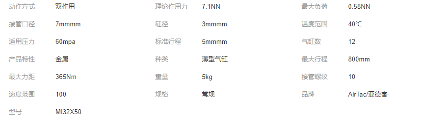 本网页所展示的有关【AIRTAC亚德客MI迷你气缸MI32/40X25X50X75X100X125X150X200SCA_气缸_江西鹏一电气有限公司】的信息/图片/参数等由全球零部件网的会员【江西鹏一电气有限公司】提供,由全球零部件网会员【江西鹏一电气有限公司】自行对信息/图片/参数等的真实性、准确性和合法性负责,本平台(本网站)仅提供展示服务,请谨慎交易,因交易而产生的法律关系及法律纠纷由您自行协商解决,本平台(本网站)对此不承担任何责任。您在本网页可以浏览【AIRTAC亚德客MI迷你气缸MI32/40X25X50X75X100X125X150X200SCA_气缸_江西鹏一电气有限公司】有关的信息/图片/价格等及提供【AIRTAC亚德客MI迷你气缸MI32/40X25X50X75X100X125X150X200SCA_气缸_江西鹏一电气有限公司】的商家公司简介、江南(中国)等信息。