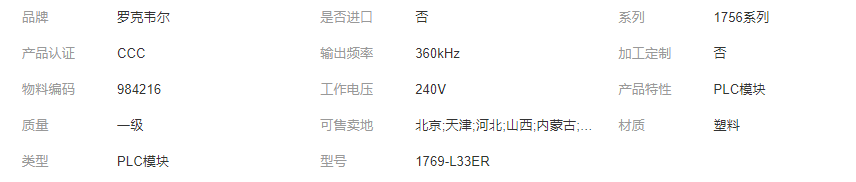 本网页所展示的有关【1769-L33ER罗克韦尔AB PLC可编程控制器CPU模块_电子行业_厦门德品电气有限公司】的信息/图片/参数等由全球零部件网的会员【厦门德品电气有限公司】提供,由全球零部件网会员【厦门德品电气有限公司】自行对信息/图片/参数等的真实性、准确性和合法性负责,本平台(本网站)仅提供展示服务,请谨慎交易,因交易而产生的法律关系及法律纠纷由您自行协商解决,本平台(本网站)对此不承担任何责任。您在本网页可以浏览【1769-L33ER罗克韦尔AB PLC可编程控制器CPU模块_电子行业_厦门德品电气有限公司】有关的信息/图片/价格等及提供【1769-L33ER罗克韦尔AB PLC可编程控制器CPU模块_电子行业_厦门德品电气有限公司】的商家公司简介、江南(中国)等信息。