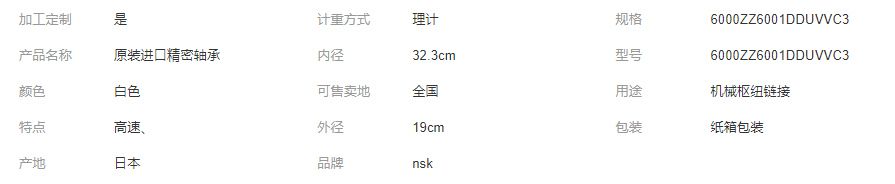 本网页所展示的有关【原装进口精密轴承 6000ZZ6001DDUVVC3 电机专用 高转速低噪音_轴承_上海科培轴承有限公司】的信息/图片/参数等由全球零部件网的会员【上海科培轴承有限公司】提供,由全球零部件网会员【上海科培轴承有限公司】自行对信息/图片/参数等的真实性、准确性和合法性负责,本平台(本网站)仅提供展示服务,请谨慎交易,因交易而产生的法律关系及法律纠纷由您自行协商解决,本平台(本网站)对此不承担任何责任。您在本网页可以浏览【原装进口精密轴承 6000ZZ6001DDUVVC3 电机专用 高转速低噪音_轴承_上海科培轴承有限公司】有关的信息/图片/价格等及提供【原装进口精密轴承 6000ZZ6001DDUVVC3 电机专用 高转速低噪音_轴承_上海科培轴承有限公司】的商家公司简介、江南(中国)等信息。