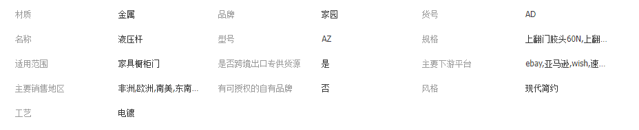 产品品名:橱柜胶头上翻支撑 规格:常规100N(其他力度定制) 颜色:银白色 包装:100支/件