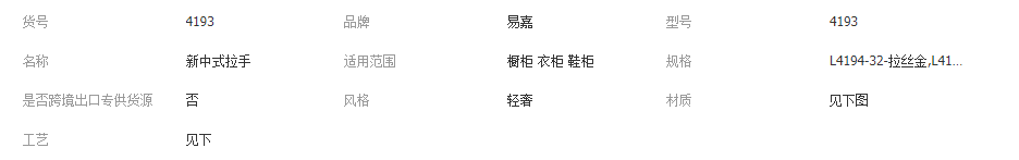 本网页所展示的有关【易嘉新中式柜门橱柜拉手 家具五金配件复古中式柜门把手半圆批发_五金配件_温州许钟五金有限公司】的信息/图片/参数等由全球零部件网的会员【温州许钟五金有限公司】提供,由全球零部件网会员【温州许钟五金有限公司】自行对信息/图片/参数等的真实性、准确性和合法性负责,本平台(本网站)仅提供展示服务,请谨慎交易,因交易而产生的法律关系及法律纠纷由您自行协商解决,本平台(本网站)对此不承担任何责任。您在本网页可以浏览【易嘉新中式柜门橱柜拉手 家具五金配件复古中式柜门把手半圆批发_五金配件_温州许钟五金有限公司】有关的信息/图片/价格等及提供【易嘉新中式柜门橱柜拉手 家具五金配件复古中式柜门把手半圆批发_五金配件_温州许钟五金有限公司】的商家公司简介、江南(中国)等信息。