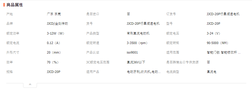 本网页所展示的有关【20mm微型直流行星减速电机有刷无刷大扭力齿轮智能晾衣架衣架马达_综合配件_东莞市金剑传动科技有限公司】的信息/图片/参数等由全球零部件网的会员【东莞市金剑传动科技有限公司】提供,由全球零部件网会员【东莞市金剑传动科技有限公司】自行对信息/图片/参数等的真实性、准确性和合法性负责,本平台(本网站)仅提供展示服务,请谨慎交易,因交易而产生的法律关系及法律纠纷由您自行协商解决,本平台(本网站)对此不承担任何责任。您在本网页可以浏览【20mm微型直流行星减速电机有刷无刷大扭力齿轮智能晾衣架衣架马达_综合配件_东莞市金剑传动科技有限公司】有关的信息/图片/价格等及提供【20mm微型直流行星减速电机有刷无刷大扭力齿轮智能晾衣架衣架马达_综合配件_东莞市金剑传动科技有限公司】的商家公司简介、江南(中国)等信息。