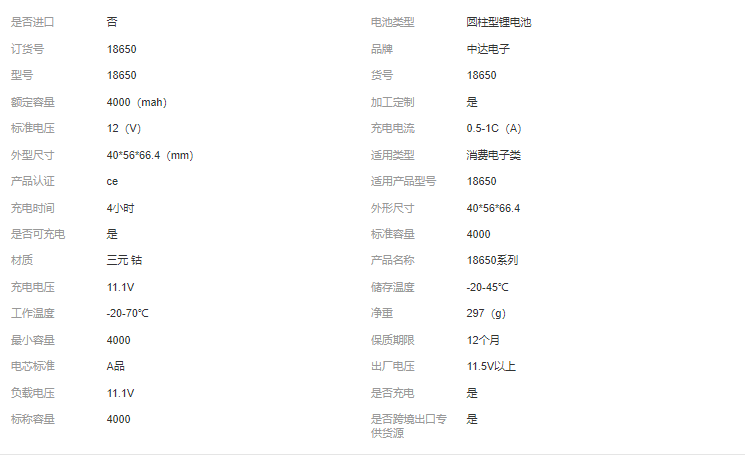 本网页所展示的有关【定制18650锂电池11.1V大容量4000mah 12V 3S2P可充 电锂离子电池组_电池/蓄电池_东莞市中达电子科技有限公司】的信息/图片/参数等由全球零部件网的会员【东莞市中达电子科技有限公司】提供,由全球零部件网会员【东莞市中达电子科技有限公司】自行对信息/图片/参数等的真实性、准确性和合法性负责,本平台(本网站)仅提供展示服务,请谨慎交易,因交易而产生的法律关系及法律纠纷由您自行协商解决,本平台(本网站)对此不承担任何责任。您在本网页可以浏览【定制18650锂电池11.1V大容量4000mah 12V 3S2P可充 电锂离子电池组_电池/蓄电池_东莞市中达电子科技有限公司】有关的信息/图片/价格等及提供【定制18650锂电池11.1V大容量4000mah 12V 3S2P可充 电锂离子电池组_电池/蓄电池_东莞市中达电子科技有限公司】的商家公司简介、江南(中国)等信息。