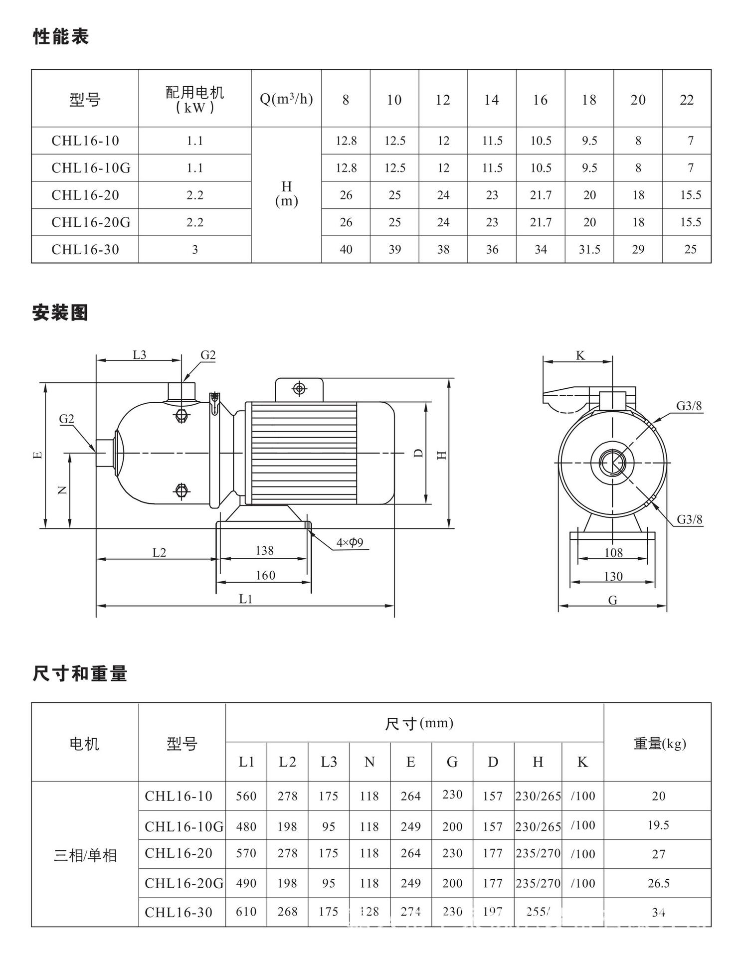 单机电机最大功率为2.4kW。 CHLK16-10GLDWLR不锈钢空调专用泵适用于输送的介质:
