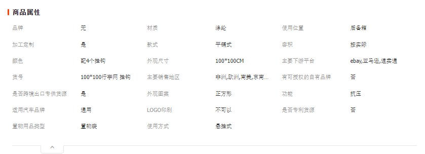 本网页所展示的有关【100*100cm汽车后备箱行李网 尾箱杂物固定网兜 储物隔物平收纳网_ HVAC汽车_广州尊宝贸易有限公司】的信息/图片/参数等由全球零部件网的会员【广州尊宝贸易有限公司】提供,由全球零部件网会员【广州尊宝贸易有限公司】自行对信息/图片/参数等的真实性、准确性和合法性负责,本平台(本网站)仅提供展示服务,请谨慎交易,因交易而产生的法律关系及法律纠纷由您自行协商解决,本平台(本网站)对此不承担任何责任。您在本网页可以浏览【100*100cm汽车后备箱行李网 尾箱杂物固定网兜 储物隔物平收纳网_ HVAC汽车_广州尊宝贸易有限公司】有关的信息/图片/价格等及提供【100*100cm汽车后备箱行李网 尾箱杂物固定网兜 储物隔物平收纳网_ HVAC汽车_广州尊宝贸易有限公司】的商家公司简介、江南(中国)等信息。