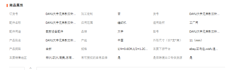 本网页所展示的有关【DAYU大宇兄弟款双针车LT2-B835/B845针位组分离针板牙齿压脚针夹_五金配件_东阳市金运哒五金工具厂】的信息/图片/参数等由全球零部件网的会员【东阳市金运哒五金工具厂】提供,由全球零部件网会员【东阳市金运哒五金工具厂】自行对信息/图片/参数等的真实性、准确性和合法性负责,本平台(本网站)仅提供展示服务,请谨慎交易,因交易而产生的法律关系及法律纠纷由您自行协商解决,本平台(本网站)对此不承担任何责任。您在本网页可以浏览【DAYU大宇兄弟款双针车LT2-B835/B845针位组分离针板牙齿压脚针夹_五金配件_东阳市金运哒五金工具厂】有关的信息/图片/价格等及提供【DAYU大宇兄弟款双针车LT2-B835/B845针位组分离针板牙齿压脚针夹_五金配件_东阳市金运哒五金工具厂】的商家公司简介、江南(中国)等信息。