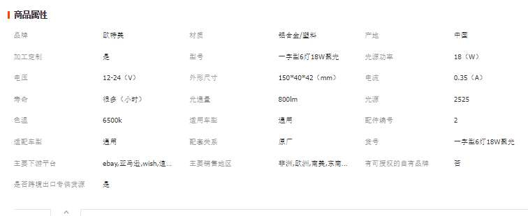 本网页所展示的有关【厂家批发外贸爆款汽车led工作灯18w6灯外置辅助摩托越野检修射灯_ HVAC汽车_深圳市宝安区燕罗欧特美汽车用品商行】的信息/图片/参数等由全球零部件网的会员【深圳市宝安区燕罗欧特美汽车用品商行】提供,由全球零部件网会员【深圳市宝安区燕罗欧特美汽车用品商行】自行对信息/图片/参数等的真实性、准确性和合法性负责,本平台(本网站)仅提供展示服务,请谨慎交易,因交易而产生的法律关系及法律纠纷由您自行协商解决,本平台(本网站)对此不承担任何责任。您在本网页可以浏览【厂家批发外贸爆款汽车led工作灯18w6灯外置辅助摩托越野检修射灯_ HVAC汽车_深圳市宝安区燕罗欧特美汽车用品商行】有关的信息/图片/价格等及提供【厂家批发外贸爆款汽车led工作灯18w6灯外置辅助摩托越野检修射灯_ HVAC汽车_深圳市宝安区燕罗欧特美汽车用品商行】的商家公司简介、江南(中国)等信息。