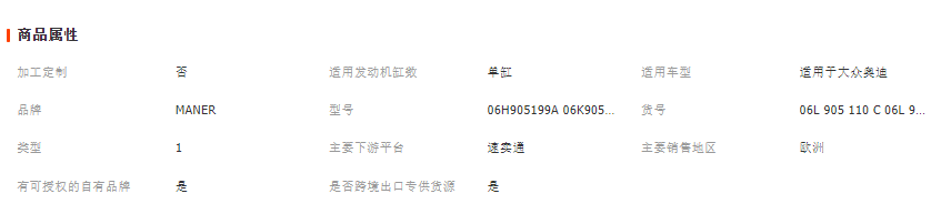 | OEM号码 | 06L905110C 06L905110D |