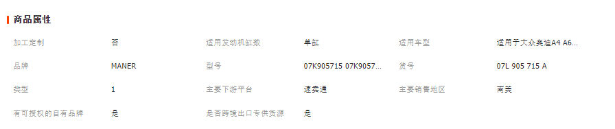 | 适用于车型 | 适用于大众奥迪A4 A6 Q5 迈腾2.0T |