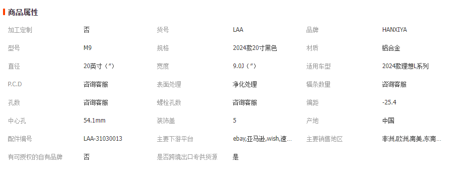本网页所展示的有关【适用理想2024款L6L7L8L9万吨锻造轮毂改装升级铝合金钢圈配件_轮毂_浩谦(香河)商贸有限公司】的信息/图片/参数等由全球零部件网的会员【浩谦(香河)商贸有限公司】提供,由全球零部件网会员【浩谦(香河)商贸有限公司】自行对信息/图片/参数等的真实性、准确性和合法性负责,本平台(本网站)仅提供展示服务,请谨慎交易,因交易而产生的法律关系及法律纠纷由您自行协商解决,本平台(本网站)对此不承担任何责任。您在本网页可以浏览【适用理想2024款L6L7L8L9万吨锻造轮毂改装升级铝合金钢圈配件_轮毂_浩谦(香河)商贸有限公司】有关的信息/图片/价格等及提供【适用理想2024款L6L7L8L9万吨锻造轮毂改装升级铝合金钢圈配件_轮毂_浩谦(香河)商贸有限公司】的商家公司简介、江南(中国)等信息。