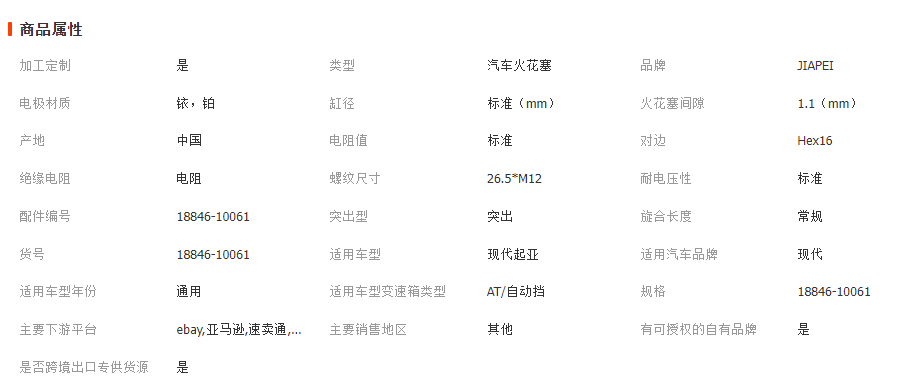 本网页所展示的有关【18846-10061 汽车火花塞 厂家批发优品良质 现货 适用于韩系汽车_火花塞_香河佳配商贸有限公司】的信息/图片/参数等由全球零部件网的会员【香河佳配商贸有限公司】提供,由全球零部件网会员【香河佳配商贸有限公司】自行对信息/图片/参数等的真实性、准确性和合法性负责,本平台(本网站)仅提供展示服务,请谨慎交易,因交易而产生的法律关系及法律纠纷由您自行协商解决,本平台(本网站)对此不承担任何责任。您在本网页可以浏览【18846-10061 汽车火花塞 厂家批发优品良质 现货 适用于韩系汽车_火花塞_香河佳配商贸有限公司】有关的信息/图片/价格等及提供【18846-10061 汽车火花塞 厂家批发优品良质 现货 适用于韩系汽车_火花塞_香河佳配商贸有限公司】的商家公司简介、江南(中国)等信息。