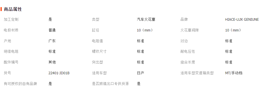 本网页所展示的有关【汽车配件火花塞适用于 NISSAN 22401-JD01B_火花塞_广州金海狮汽车配件有限公司】的信息/图片/参数等由全球零部件网的会员【广州金海狮汽车配件有限公司】提供,由全球零部件网会员【广州金海狮汽车配件有限公司】自行对信息/图片/参数等的真实性、准确性和合法性负责,本平台(本网站)仅提供展示服务,请谨慎交易,因交易而产生的法律关系及法律纠纷由您自行协商解决,本平台(本网站)对此不承担任何责任。您在本网页可以浏览【汽车配件火花塞适用于 NISSAN 22401-JD01B_火花塞_广州金海狮汽车配件有限公司】有关的信息/图片/价格等及提供【汽车配件火花塞适用于 NISSAN 22401-JD01B_火花塞_广州金海狮汽车配件有限公司】的商家公司简介、江南(中国)等信息。