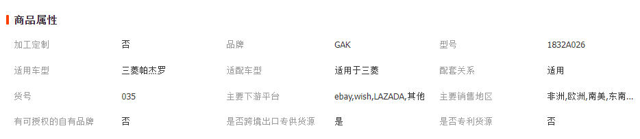 本网页所展示的有关【跨境热销GAK汽配件点火线圈1832A026 适用于三菱 帕杰罗_点火线圈_广州市万杭工贸有限公司】的信息/图片/参数等由全球零部件网的会员【广州市万杭工贸有限公司】提供,由全球零部件网会员【广州市万杭工贸有限公司】自行对信息/图片/参数等的真实性、准确性和合法性负责,本平台(本网站)仅提供展示服务,请谨慎交易,因交易而产生的法律关系及法律纠纷由您自行协商解决,本平台(本网站)对此不承担任何责任。您在本网页可以浏览【跨境热销GAK汽配件点火线圈1832A026 适用于三菱 帕杰罗_点火线圈_广州市万杭工贸有限公司】有关的信息/图片/价格等及提供【跨境热销GAK汽配件点火线圈1832A026 适用于三菱 帕杰罗_点火线圈_广州市万杭工贸有限公司】的商家公司简介、江南(中国)等信息。