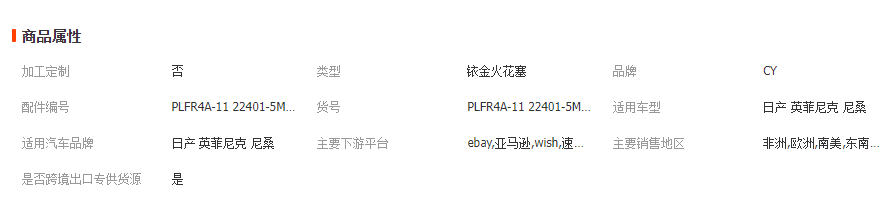 本网页所展示的有关【PLFR4A-11 PLFR4G-11火嘴火花塞 22401-5M014 适用于日产尼桑_火花塞_深圳市川岳贸易有限公司】的信息/图片/参数等由全球零部件网的会员【深圳市川岳贸易有限公司】提供,由全球零部件网会员【深圳市川岳贸易有限公司】自行对信息/图片/参数等的真实性、准确性和合法性负责,本平台(本网站)仅提供展示服务,请谨慎交易,因交易而产生的法律关系及法律纠纷由您自行协商解决,本平台(本网站)对此不承担任何责任。您在本网页可以浏览【PLFR4A-11 PLFR4G-11火嘴火花塞 22401-5M014 适用于日产尼桑_火花塞_深圳市川岳贸易有限公司】有关的信息/图片/价格等及提供【PLFR4A-11 PLFR4G-11火嘴火花塞 22401-5M014 适用于日产尼桑_火花塞_深圳市川岳贸易有限公司】的商家公司简介、江南(中国)等信息。