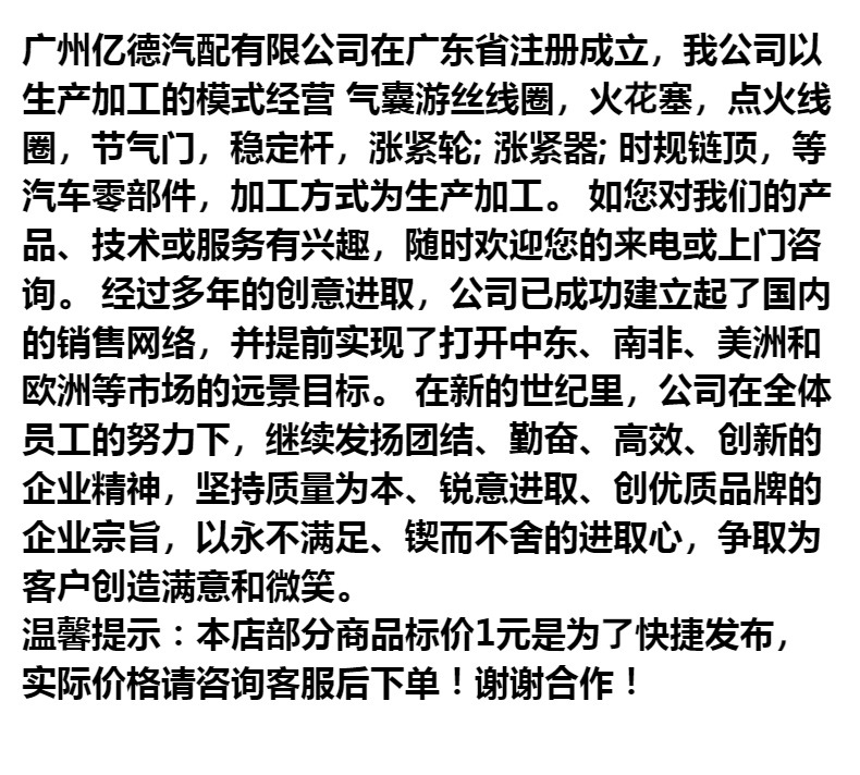 本网页所展示的有关【90919-02248点火线圈 90919 02248高压包适用凯美瑞汽车跨镜专供_点火线圈_广州亿德汽配有限公司】的信息/图片/参数等由全球零部件网的会员【广州亿德汽配有限公司】提供,由全球零部件网会员【广州亿德汽配有限公司】自行对信息/图片/参数等的真实性、准确性和合法性负责,本平台(本网站)仅提供展示服务,请谨慎交易,因交易而产生的法律关系及法律纠纷由您自行协商解决,本平台(本网站)对此不承担任何责任。您在本网页可以浏览【90919-02248点火线圈 90919 02248高压包适用凯美瑞汽车跨镜专供_点火线圈_广州亿德汽配有限公司】有关的信息/图片/价格等及提供【90919-02248点火线圈 90919 02248高压包适用凯美瑞汽车跨镜专供_点火线圈_广州亿德汽配有限公司】的商家公司简介、江南(中国)等信息。